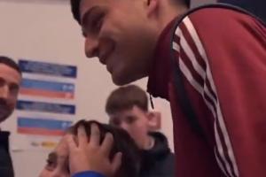 ESPN晒出视频,正随西班牙征战的巴萨中场佩德里赢得了球迷们的广泛欢迎,在他与球迷见面时,一名小球迷看到自己的偶像甚至激动地哭了出来。佩德里也亲切地与他交谈并合影。