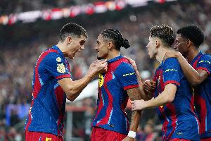 体育资讯1月12日讯 西超杯决赛,巴萨3-2战胜皇马。赛后在接受采访时,本场双响的拉菲尼亚表示,戴同款太阳镜是因为有点迷信。